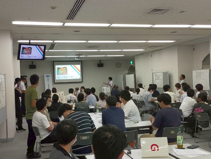 13日は、当協議会災害対策委員や静岡JRAT役員ら22名が参加し、REHUGの進行と助言を担うファシリテーターの養成を行いました。翌14日は、リハ専門職に加え、医師、介護員、リハ養成校学生など計61名が参加し、REHUGの演習を実施しました。