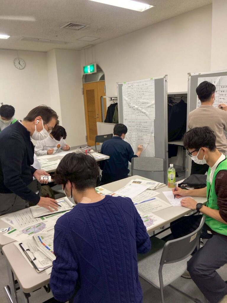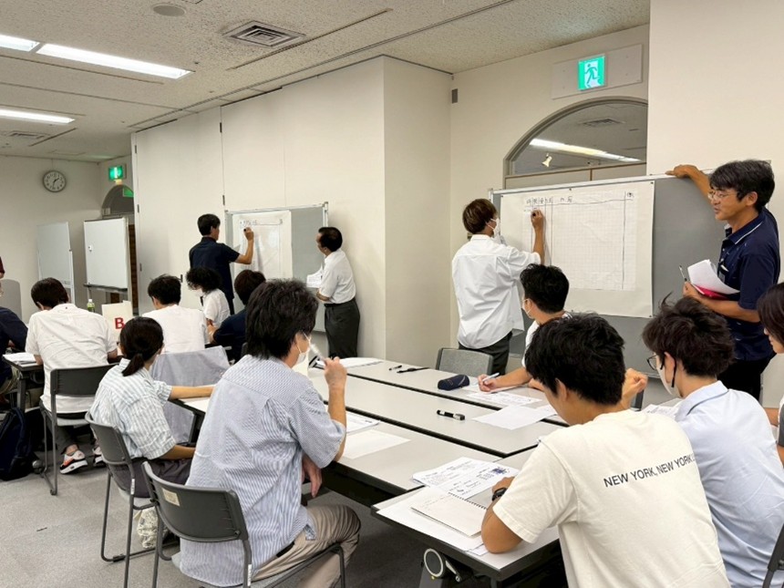 研修内容は、昨年度にも行った講義(「災害リハビリテーションと地域リハビリテーション」「災害リハビリテーション支援の実際」)と、演習(REHSUG:大規模災害リハビリテーション支援チーム本部立ち上げゲーム、DREAG:大規模災害リハビリテーション支援ゲーム)に加えて、経時活動記録(クロノロ)を実際にライティングシートに記入する演習を追加しました。